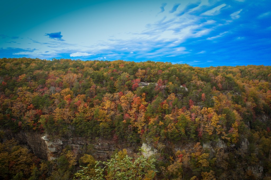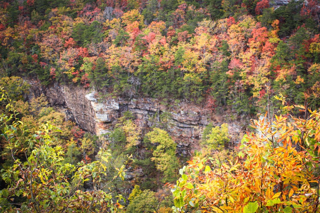 Standing at the Main Overlook, we were met with an explosion of fall color – orange, gold, and deep red – with the ridges fading into the blue haze of Lookout Mountain.
