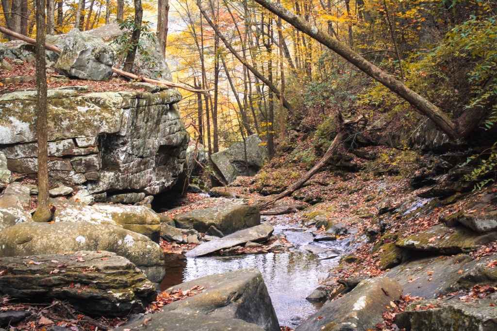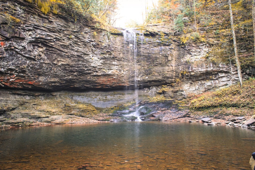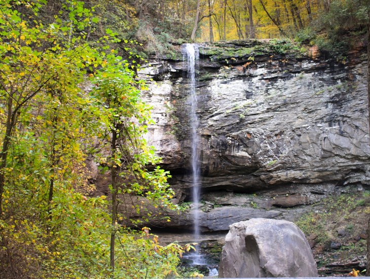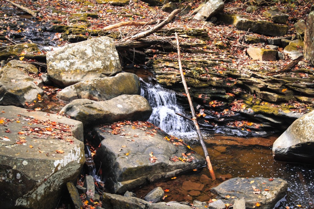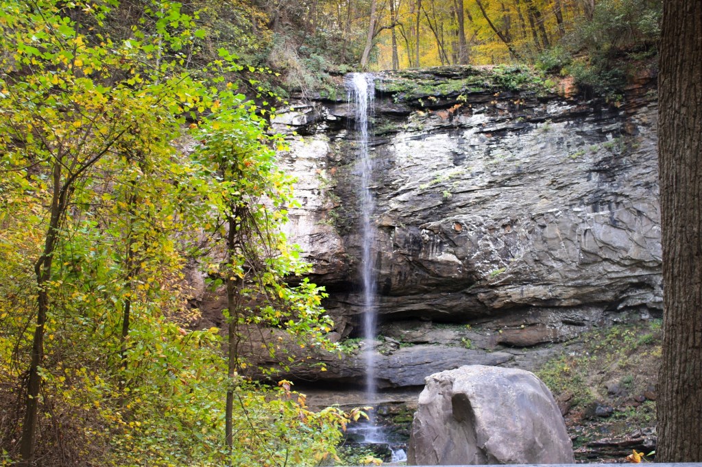 Cherokee Falls and Hemlock Falls weren’t roaring this time of year, but they didn’t need to be. They were just beautiful in their simplicity with water pouring gently over dark layers of rock while the season’s leaves floated down around it.